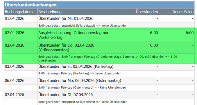 Viertelfeiertag + restlicher Tag Überstundenausgleich |
